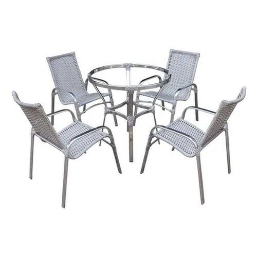 4 Cadeiras E Mesa Com Tampo E 2 Espreguiçadeiras Regulável Trama - Cinza