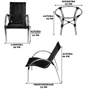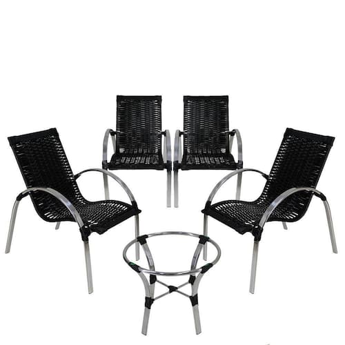 4 Cadeiras E Mesa De Centro Em Garden Em Alumínio Preta - Preto