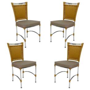 4 Cadeiras Em Alumínio E Fibra Sintética Jk Cozinha Edícula Avelã E Fundi