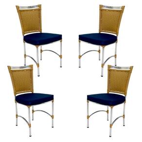 4 Cadeiras Em Alumínio E Fibra Sintética Jk Cozinha Edícula Avelã E Lisato Marinho