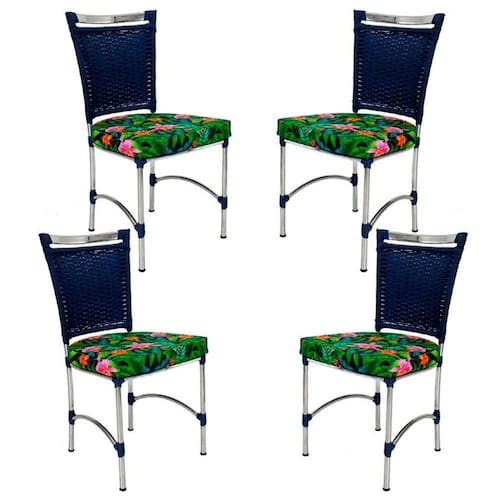 4 Cadeiras Em Alumínio E Fibra Sintética Jk Cozinha Edícula Azul Dark E Creara
