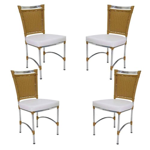 Características:Peças produzidas em alumínio e revestidas em fibra sintética com proteção UV.Nossos produtos são artesanais e podem ocorrer variações na medida de até 2cm.As cores dos produtos podem variar de acordo com o ambiente e com a iluminação em que as fotos foram tiradas. Ideal para ambientes internos, varandas, edículas, área de lazer, salas de estar, sala de jogos, churrasqueiras, sala de filme, recepção, sala de espera entre outros. Itens inclusos: 4 cadeira JK em alumínioDimensões::Altura total: 94 cmLargura: 48 cmProfundidade: 45 cmPeso: 23 kgSuporta até 180 kg Dúvidas frequentes:Quais as cores disponíveis?Temos 11 opções de cores disponíveis para a fibra sintética.Como escolher a cor do produto?Após a confirmação do pagamento ficará disponível um campo de mensagens entre o vendedor e o comprador, por lá será acertado todos os detalhes referentes as cores do produto escolhido antes de ser encaminhado para a produção.Os produtos podem ficar expostos ao tempo?Sim, a estrutura de alumínio pode ser molhada e utilizada em áreas abertas, exposta ao sol e chuva. A fibra sintética possui filtro UV, com isso o produto pode ficar tranquilamente exposto ao tempo sem que o mesmo danifique-o.