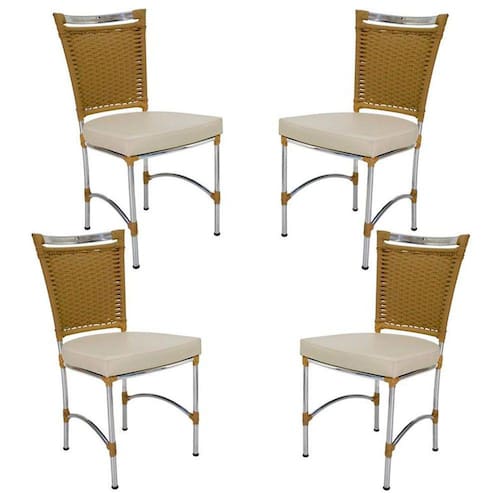 4 Cadeiras em Alumínio e Fibra Sintética JK Cozinha Edícula - Bege Claro