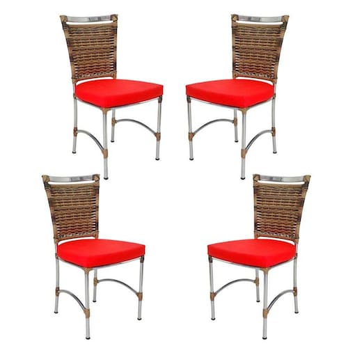 4 Cadeiras em Alumínio e Fibra Sintética JK Cozinha Edícula - Vermelho