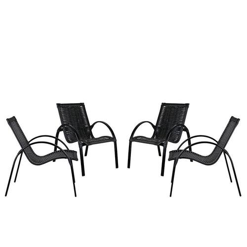 4 Cadeiras Garden Em Alumínio Pintado Para área Externa Fibra Sintética Acesse Móveis Preto