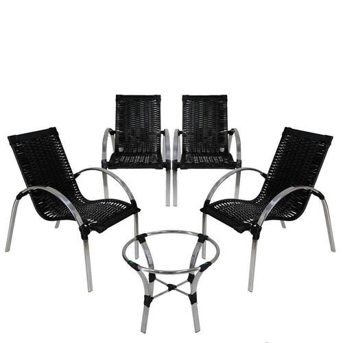 4 Cadeiras Em E Alumínio Mesa De Centro Garden Preta - Preto
