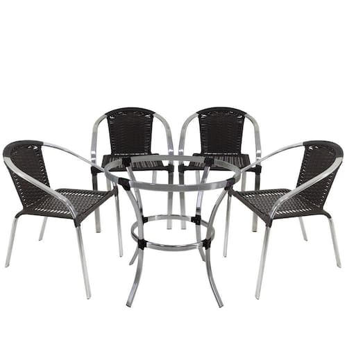 4 Cadeiras Em Fibra Sintética Com Mesa Em Alumínio Para área Externa Salinas - Tabaco