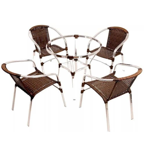 4 Cadeiras Floripa e Mesa Ascoli em Aluminio Para Jardim, Piscina, Edicula Trama