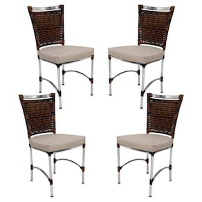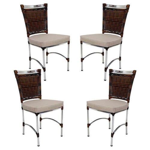 4 Cadeiras Jk Em Alumínio E Fibra Sintética Cozinha Edícula Argila E Fundo Palha - Bege