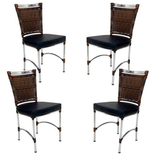 4 Cadeiras JK em Alumínio e Fibra Sintética Cozinha Edícula - Preto
