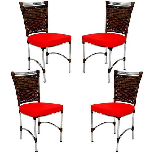 4 Cadeiras JK em Alumínio e Fibra Sintética Cozinha Edícula - Vermelho