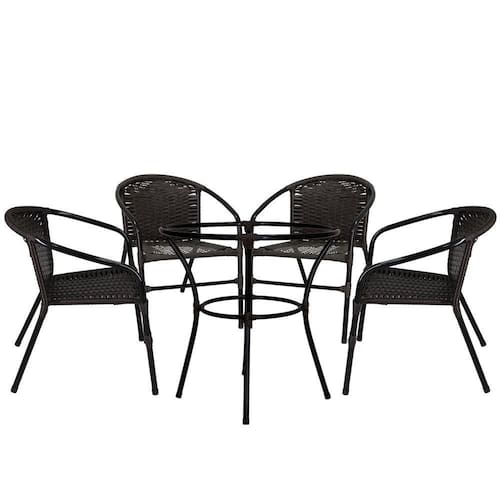4 Cadeiras Com Mesa Em Fibra Sintética Salinas Artesanal Para área De Lazer - Tabaco