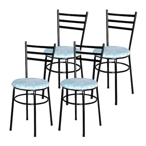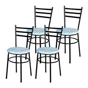 4 Cadeiras Para Cozinha Epoxi Preta Assento Floral Cor:floral Gelo