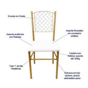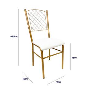Além disso, a Cadeira para Cozinha com Reforço é revestida em pintura eletrostática epóxi na cor dourado fosco, que a torna resistente e durável, garantindo assim que o produto tenha uma vida útil longa e sem riscos de enferrujamento. E por ser compacta e confortável, ela se adapta facilmente a qualquer ambiente, seja em cozinhas pequenas ou grandes.