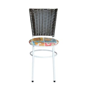 4 Cadeiras Para Mesa Branca Hawai Marrom Assento Floral Happy Hour - Branco