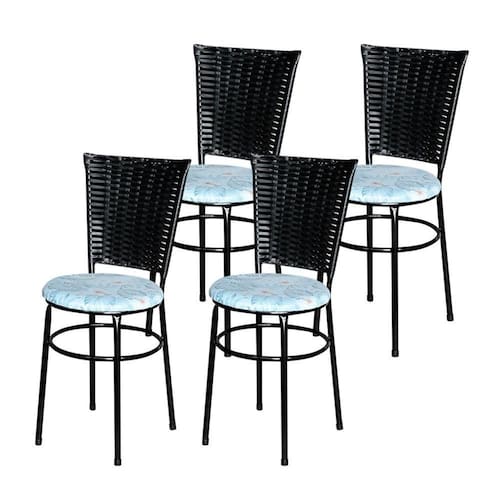 4 Cadeiras Preta Para Mesa Hawai Preta Assento Floral Gelo