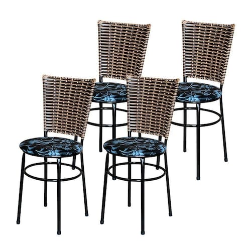 4 Cadeiras Pretas Para Cozinha Hawai Avelã Assento Floral Preto