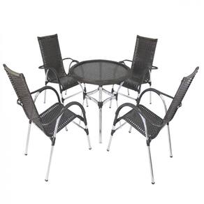4 Cadeiras Vênus Alumínio e Mesa com Tampo Tramado para Jardim, Piscina, Área - Preto