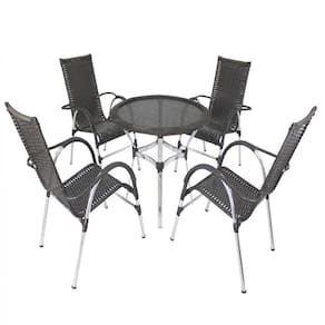 4 Cadeiras Vênus Alumínio e Mesa com Tampo Tramado para Jardim, Piscina, Área - Marrom Escuro