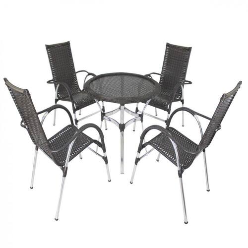 4 Cadeiras Vênus Alumínio e Mesa com Tampo Tramado para Jardim, Piscina, Área - Marrom