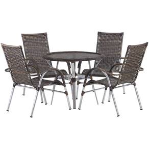 4 Cadeiras Vênus Alumínio e Mesa Trama - Bege Claro