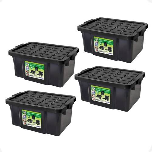 4 caixa organizadora multiuso preta 15l empilhável com tampa Container organizador empilhavel 15 lts - primeira moagem