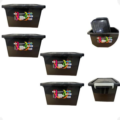 Caixa organizadora preta 20l empilhável trava e rodizio