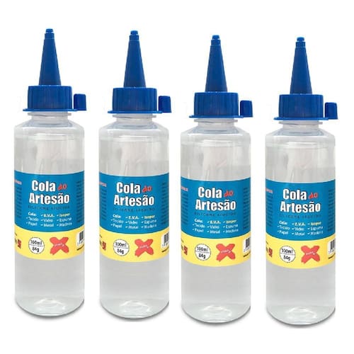 4 Cola De Silicone Líquida Artesanato Eva Isopor Couro 100Ml