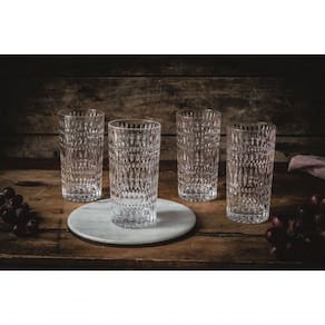 4 Copos Altos Ethno Em Vidro Cristal 434ml Nachtmann Este copo é perfeito para trazer um toque de luxo para sua casa. Lindamente cortados do melhor cristal, os copos são essenciais para quem quer trazer um novo brilho ao bar de sua casa. A série de artigos de vidro NACHTMANN Ethno tem sua personalidade única de padrão distinto e harmonioso de elementos entalhados compactados.Suas facetas criam um jogo de luz brilhante, especialmente em ambientes noturnos. Combinando um toque multicultural comum a leveza descontraída.Ficha técnica:- Código: 4080200069- Marca: Nachtmann- Modelo: Ethno- Conteúdo da Embalagem: 4 Copos-Especificações do produto: Pode ir a lava louças- Material: Vidro Cristal- Capacidade: 434ml (cada)- Peso: 1,87kg- Dimensões: 16,1cm x 16cm x 16cm (AxLxP)- Garantia: 3 Meses - Contra defeito de fabricação Sobre a Marca - Fundada em 1864, com a herança de fabricar cristais feitos à mão e à máquina que remonta a mais de dois séculos. Na Nachtmann eles acreditam que cada dia oferece uma perspectiva de alegria e surpresa. Cada dia é especial. Qualquer reunião de amigos pode se tornar uma ocasião. Qualquer refeição em família pode ser memorável. A reunião mais casual pode se tornar uma celebração. Em 2004, a marca se junta ao estilo de vida da Riedel Glassworks, uma empresa familiar com uma orgulhosa herança de 265 anos. Marca: Natchmann