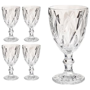 4 Copos Transparente Taças Diamante 300ml Para Agua Vinho