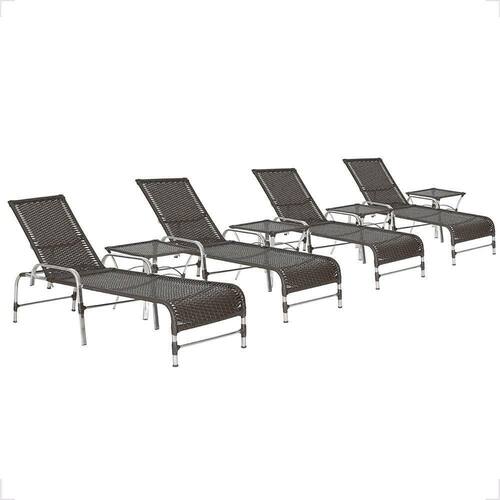 4 Espreguiçadeira Catar E 4 Mesa Garden Alumínio E Fibra