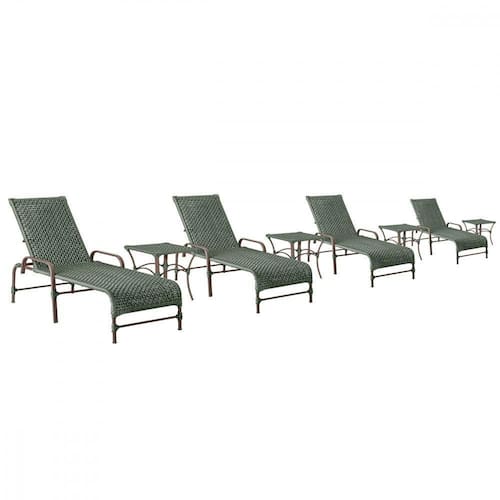 4 Espreguiçadeiras Catar E 4 Mesas Garden Cor Marrom Trama Verde
