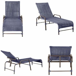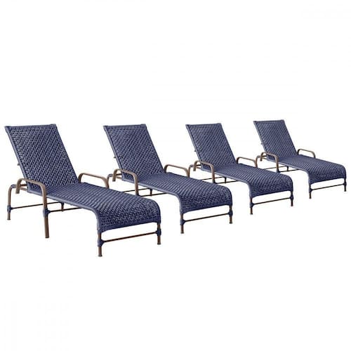 4 Espreguiçadeiras Reclinavel Catar Marrom Corda Nautica Azul