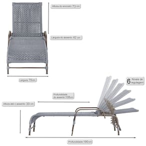 O encosto reclinavel permite ajuste perfeito para seu conforto, enquanto a corda nautica trancada proporciona um toque elegante e ergonomico.