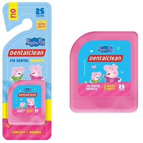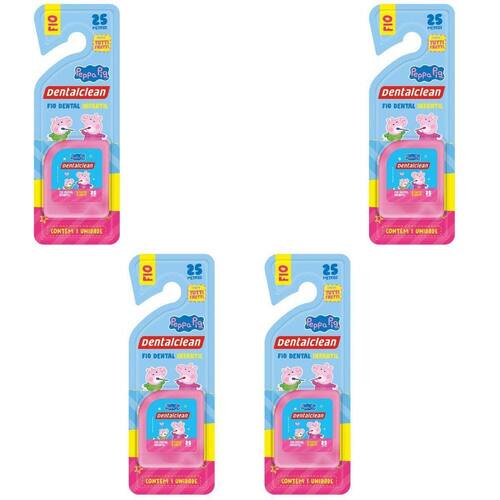 4 fio dental infantil - peppa pig - 25m - rosa - dentalclean 4 x fio dental infantil - peppa pig - tutti frutti - 25m - rosa - dentalclean