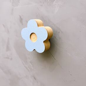 A face vai colada com super cola e acaba sendo apenas decorativa, pois é o suporte quem recebe o esforço, suportando até 5 Kg. Anúncio referênte à 4 unidades. Modelo: Flor Tamanho da face: 5,0cm X 5,0cm; Material: MDF laminado 15mm melamínico | borda cru Cor: Rosa, Azul, Branco e Cinza