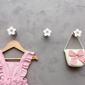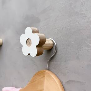 A face vai colada com super cola e acaba sendo apenas decorativa, pois é o suporte quem recebe o esforço, suportando até 5 Kg. Anúncio referênte à 4 unidades. Modelo: Flor Tamanho da face: 5,0cm X 5,0cm; Material: MDF laminado 15mm melamínico | borda cru Cor: Rosa, Azul, Branco e Cinza