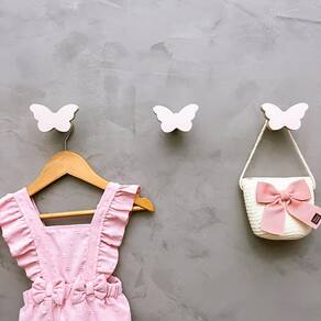 A face vai colada com super cola e acaba sendo apenas decorativa, pois é o suporte quem recebe o esforço, suportando até 5 Kg. Anúncio referênte à 4 unidades. Modelo: Borboleta Tamanho da face: 6,0cm X 4,0cm; Material: MDF laminado 15mm melamínico | borda cru Cor: Rosa, Azul, Branco e Cinza