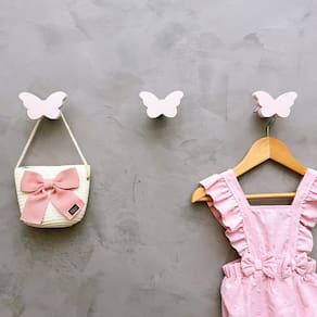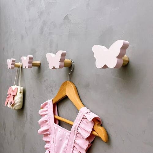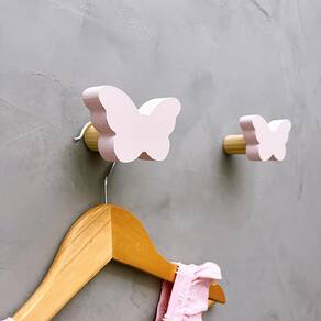 A face vai colada com super cola e acaba sendo apenas decorativa, pois é o suporte quem recebe o esforço, suportando até 5 Kg. Anúncio referênte à 4 unidades. Modelo: Borboleta Tamanho da face: 6,0cm X 4,0cm; Material: MDF laminado 15mm melamínico | borda pintada Cor: Rosa, Azul, Branco e Cinza