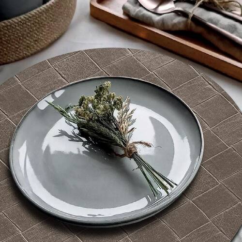 Esse jogo americano proporciona um excelente efeito visual à mesa a um custo muito baixo se comparado a outros modelos que imitam couro. Devido ao seu estilo clássico e ao mesmo tempo descontraído, de cor única, ele combina bem com diversos tipos de louça, de mesa e de ambiente. Possui gravação em relevo que imita o couro trançado, no entanto é apenas efeito visual, ele não retém resíduos de alimentos. Feito em PVC 100% impermeável, ele é muito fácil de limpar e muito prático para o dia a dia. VANTAGENS - 100% Impermeável; - Fácil de limpar; - Material de qualidade; - Flexível e Resistente; - Prático para o dia a dia; - Protege a mesa e a toalha; - Fácil de guardar; - Design moderno e elegante; - Gravação em relevo, imita couro trançado. - Combina com qualquer ambiente. CONTÉM: 4 peça s MATERIAL: 100% PVC Impermeável DIMENSÕES: 38cm de diâmetro FÁCIL LIMPEZA - Pano úmido - Pano com álcool ou veja e etc. - Lavar com esponja e detergente - Seca rápido Somos fabricantes, por isso o melhor preço para esse produto. Um produto Idealiza Comercio de Utilidade Marca: Não Informado Ean: 7908430121711