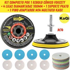 4 Lixas Grão 4 Pol. 100mm Diamantada + 1 Rebolo Cônico 45 Graus + 1 Disco Prato + 1 Pino M14 KaQi GRÃO: g200 g400 g800 g6000 Kit 4 Lixas Diamantadas Disco 4 Polegadas 100mm KaQi + 1 Rebolo Grão 120 Copo Cônico 45 Graus 4 Polegadas M14 Forcety. + 1 Suporte Prato Disco 100mm M14 KaQi + 1 Pino Adaptador Multiuso Rosca Universal M14 KaQi. Para Desbastes, Polimentos, Acabamentos, Boleamentos, Lixamentos a Seco e Úmido. Para profissionais e entusiastas de reformas e construção. Transforme o acabamento das suas superfícies com o Kit 4 Lixas Grão 4 Pol. 100mm Diamantada + 1 Rebolo Cônico 45 Graus + 1 Disco Prato + 1 Pino M14 Desenvolvido para oferecer o melhor polimento e acabamento, é perfeito para quem busca resultados profissionais, tanto em pedras como granitos, mármores, cerâmicas, quanto ardósia, calcário, dekton, quartzo, porcelanato, pedra projetada, concreto, nanoglass, super nano, vidro e muito mais. Seu lixamento pode ser a seco e a úmido, o que proporciona um processo mais rápido, sem gerar calor excessivo. Assim, é possível garantir um resultado sem manchas ou falhas, e ainda favorece um efeito brilho d'água incrível O Rebolo Copo Cônico 10x5cm Grão 120 Forcety é ideal para desbastes, retificações, boleamentos e acabamentos. Projetado para oferecer eficiência, durabilidade, confiabilidade e resultados excepcionais, é perfeito para profissionais e entusiastas de reformas e construções. Não à toa, é o rebolo número 1 das marmorarias, azulejistas e oficinas de todo Brasil O Disco 100mm e o pino adaptador M14 podem ser utilizados em conjunto com as lixas e com o rebolo. Com sistema de gruda e desgruda fácil, podem utilizadas em lixadeiras, esmerilhadeiras, politrizes, furadeiras, parafusadeiras. Permite, assim, ampliar a gama de usos do kit. Principais características: 1. Durabilidade extra, alta resistência ao desgaste, longa vida útil e desempenho, além de excelente performance em diversos tipos de materiais. 2. Acabamento impecável no desbaste e polimento de superfícies de pedra, mármore, calcário, ardósia, porcelanato e outros, sem deixar manchas ou marcas indesejadas. Pode ser trabalhada em superfícies claras ou escuras. Oferece uma remoção eficiente de material e um acabamento uniforme. 3. Versatilidade no uso com diversas ferramentas, já que pode ser Utilizado em esmerilhadeiras, lixadeiras, politrizes e furadeiras elétricas. 4. Eficiência de montagem, uma vez que possui sistema de fixação rápido. Basta encostar a lixa no suporte do disco para grudar, e, para remover, é só puxar na direção contrária. Conteúdo da embalagem: 4 Lixas DÁgua 4 Pol. 100mm Disco Diamantado KaQi GRÃO. + 1 Rebolo Grão 120 Copo Cônico 45 Graus 4 Polegadas M14 Forcety. + 1 Suporte Prato Disco 100mm M14 KaQi + 1 Pino Adaptador Multiuso Rosca Universal M14 KaQi. Especificações Lixas: Diâmetro: 100mm 4 Polegadas . Furo central: 1,3cm diâmetro. Espessura 1 unidade: 0,4cm. Maleabilidade: flexível. Lixamentos: seco e úmido. RPM: ideal entre 3000 a 5000 rotações por minuto. Material da lixa: diamante sintético industrial e resina premium. Costado: tipo vellcro. Fácil de fixar e remover. Especificações Rebolo: Trabalho: a seco ou refrigerado com água. Diâmetro: 4 Polegadas 100mm 10,16cm x altura 5,08cm. Velocidade: 9023RPM. Rosca: M14. Material: Carbeto de Silício SiC com diamantes. Feito para ser conforme norma ABNT NBR 15230. Especificações Prato Suporte: Diâmetro do disco: 100mm 4 Polegadas . Modelo do disco: M14 com superfície tipo vellcro. RPM: até 12000. Rosca: padrão M14 14mm . Especificações Pino Adaptador M14: Para Furadeira Parafusadeiras, Politrizes, Lixadeiras e Esmerilhadeiras. Fixa em discos pratos M14 para uso com lixas, boinas, espumas de polir, entre outros acessórios. Rosca: M14 14mm . Pino largura: 8mm. Altura total: 4,4cm.