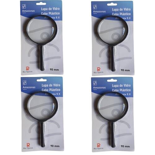 Comprimento Total da Lupa: 17,5 cm Poder de ampliação: 5X Conteúdo da embalagem: 04 Lupas de Mão