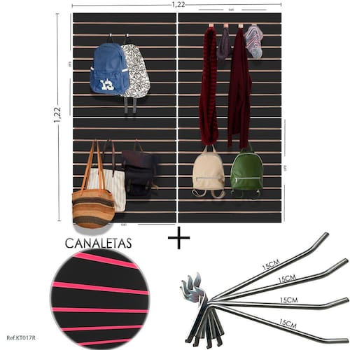 4 Paineis Canaletados - 0,61 X 0,61 + 100 Ganchos 15CM + CANALETA ROSA