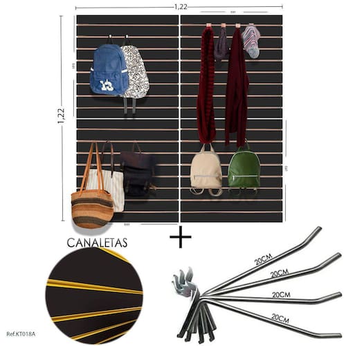 4 Paineis Canaletados - 0,61 X 0,61 + 100 Ganchos 20CM + Canaleta Amarela