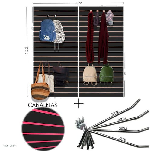 DESCRIÇÃO: 4 unidades de painéis canaletados 0,61 X 0,61 + 100 Unidades de Ganchos Zincados + Canaletas ROSA