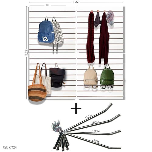 4 Paineis Canaletados - 0,61 X 0,61 + 50 Ganchos 15CM
