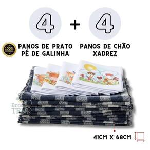 4 panos de prato pé de galinha + 4 panos de chão xadrez duplo grande limpeza multiuso - achadinho de limpeza que vai facilitar sua vida - combo com 4 panos de prato + 4 panos de chão xadrez. Chega de lutar com panos finos, que não secam nada e rasgam na primeira lavada. Se você ama praticidade e valoriza qualidade de verdade, esse combo foi feito pra você - panos de prato pé de galinha, o clássico que nunca decepciona. Tecido grosso 100% algodão que absorve muito mais e seca rapidinho. Nada de fiapos ou pano escorregando da mão, firme, macio e super resistente. Costura reforçada + tamanho grande 41x68cm, mais eficiência no dia a dia. - estampas encantadoras que dão aquele toque aconchegante à cozinha. Perfeito para secar louça, cobrir alimentos, decorar e facilitar sua rotina. - panos de chão xadrez a potência que sua faxina precisa. Algodão duplo, grosso e superabsorvente: puxou água e sujeira de primeira tamanho extra grande 65x40cm que cobre mais área e agiliza a limpeza. Resistente, durável e prático, aguenta faxina pesada sem rasgar ou encolher. Estilo xadrez tradicional que traz aquele charme retrô pra casa. - qualidade de verdade, daquelas que lembram os panos de antigamente. Economia inteligente, dura muito mais, vale cada centavo. Estampas enviadas conforme disponibilidade, sempre lindas ideal para renovar o enxoval, montar kits ou presentear com utilidade e bom gosto. - descubra o prazer de limpar com praticidade e eficiência de verdade. Marca: Não Informado Ean: 7898140142376