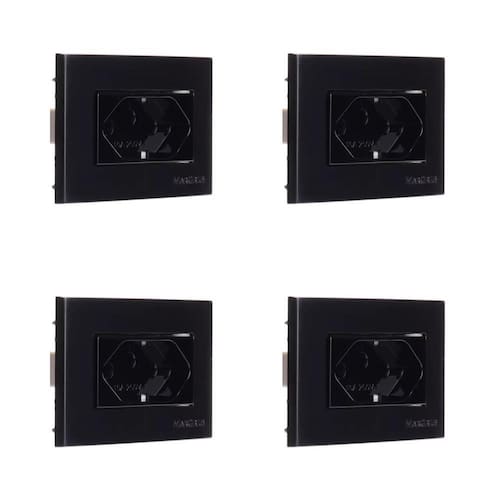 4 Pç Tomada Para Moveis Margirius 2P+T Preta 10A 250V Nbr14136 Tomada para embutir em madeira, MDF, MDP ou derivados. Utilizada principalmente na marcenaria, ideais para peças planejadas como armários, cabeceiras, painéis, bancadas, balcões de cozinha, mesas para escritório, entre outrasObs: Modelo de 20A com sistema inteligente para reconhecimento de pino menor 10A por exemplo . Pino não fica solto dentro da tomada, mecanismo de aperto do pino é acionado no interior da tomada para que o mesmo fique firme.Amperagem: 10ACorrente: 250VCor: Preto BrilhanteComposição: Materiais plásticos isolantes termoplásticos de engenharia e ligas metálicas condutorasComprimento: 41.9mm / Largura: 65mm / Altura 45mmPeso: 0,030 kg