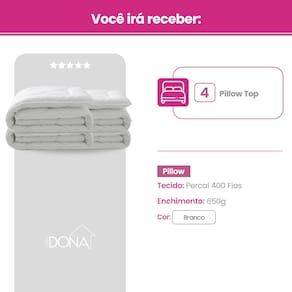 Marca: Casa Dona Modelo: Pillow Top Dimensões: 1,88 m (Comprimento) x 1,38 m (Largura) x 5 cm (Altura) Compatibilidade: Para colchões com até 40 cm de altura
