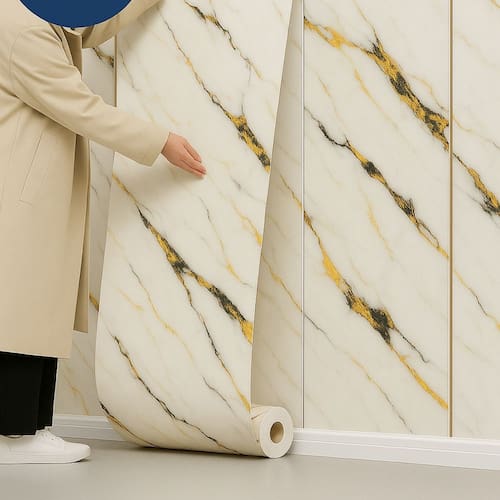 Design: Estampa realista de mármore, sem divisórias visíveis, para um acabamento contínuo.